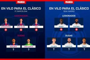 10人伤缺?皇马巴萨缺席月底德比人员:巴萨3伤2疑,皇马2伤3疑